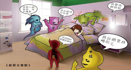 家居裝修中產生的污染物主要有5種: 甲醛、苯、氨氣、放射性氡、TVOC(總揮發性有機化合物)。甲醛和苯是其中最常見、危害最大的兩類污染物(圖片來源于網絡)