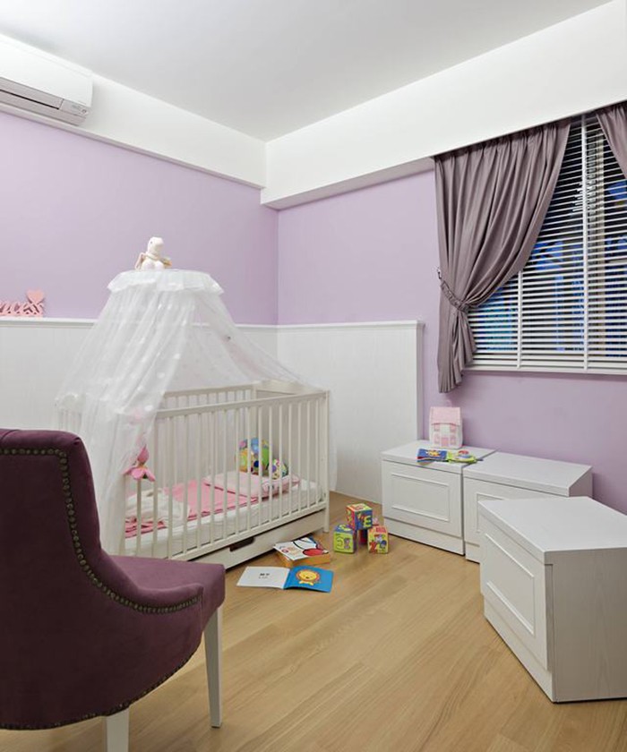 不同于主臥的完整設定,粉紫顏色房則著重未來彈性。